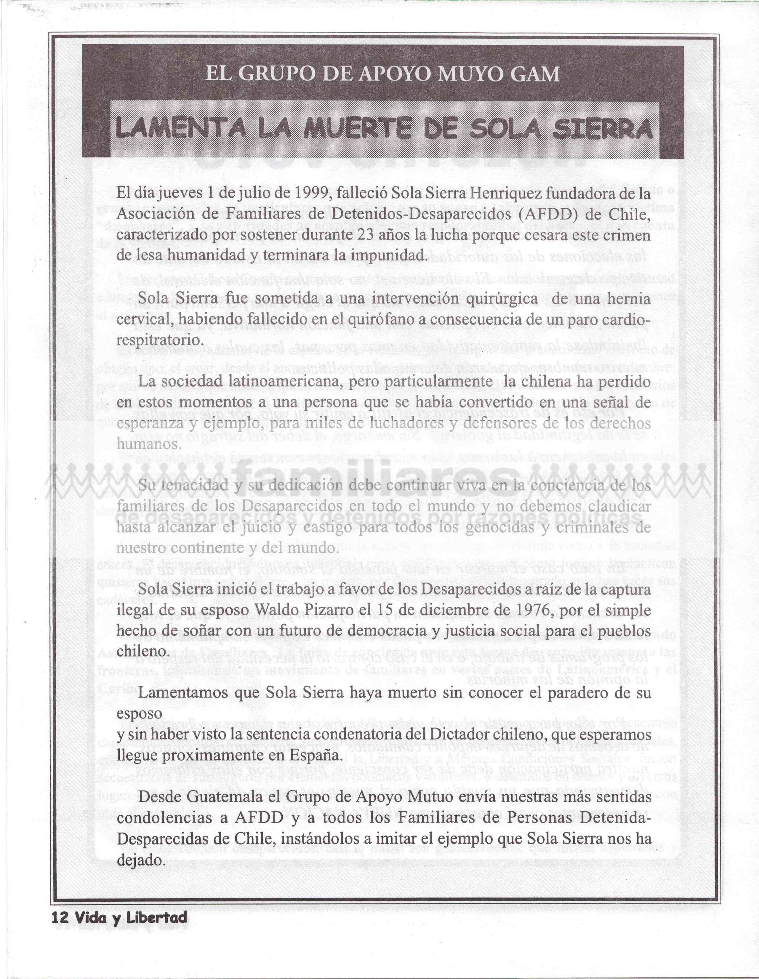 Vida y Libertad - órgano divulgativo del Grupo de Apoyo Mutuo