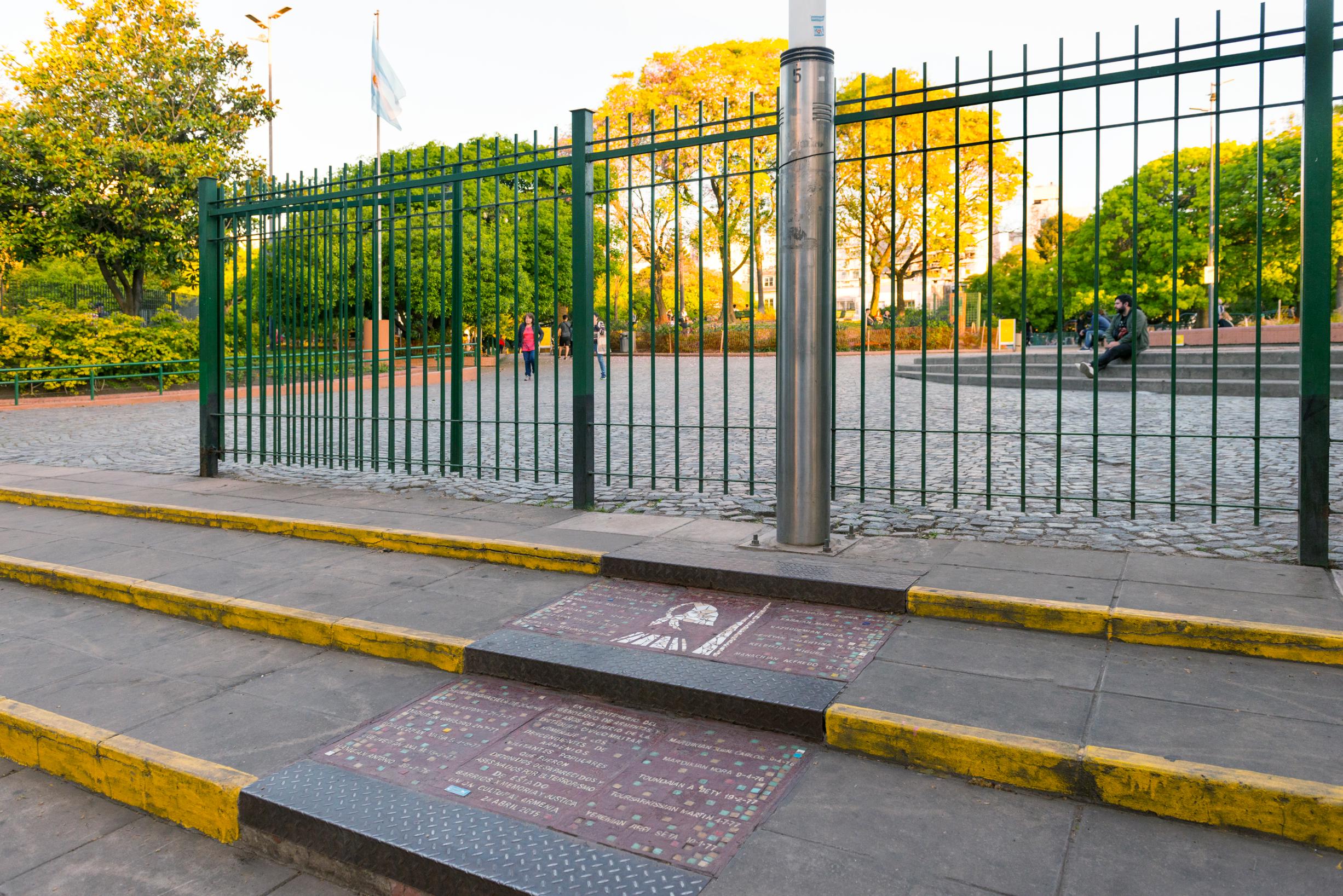 En la Plaza Inmigrantes de Armenia están emplazadas las baldosas que recuerdan a los desaparecidos y asesinados de origen armenio. El 18 de abril de 2015, a días del centenario del Genocidio Armenio, la Unión Cultural Armenia y Barrios x Memoria y Justicia Palermo instalaron cuatro de las baldosas llevan inscriptos los nombres y apellidos de los homenajeados y las figuras del pañuelo de las Madres de Plaza de Mayo y del Monumento de Dzidzernagapert.